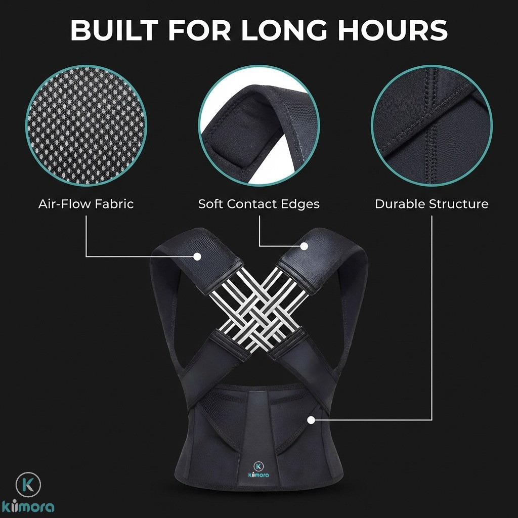 Back & Shoulder Support – Helps reduce slouching, neck strain, and upper-back fatigue