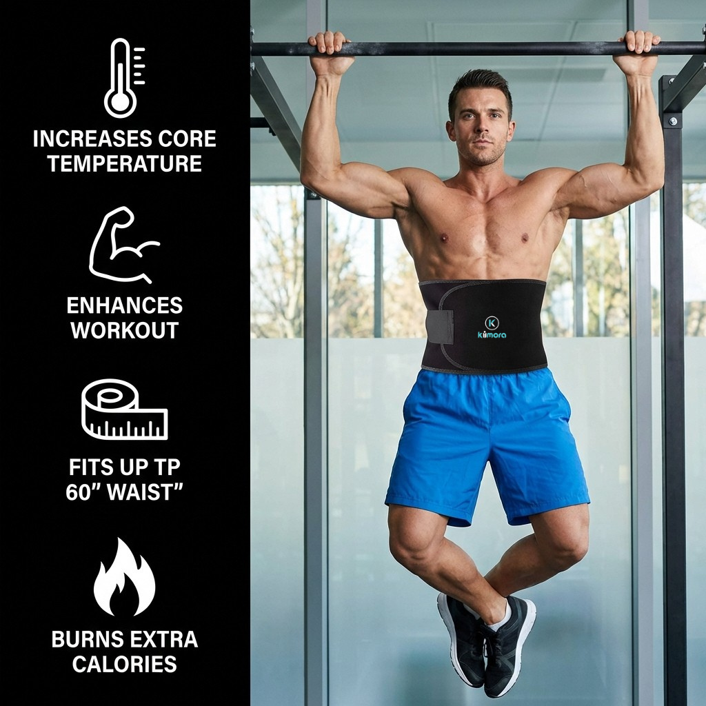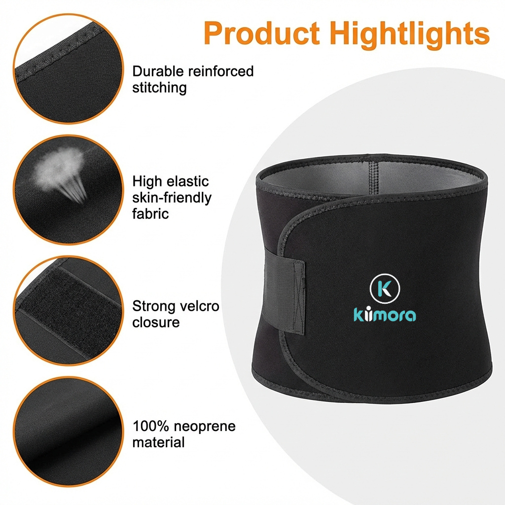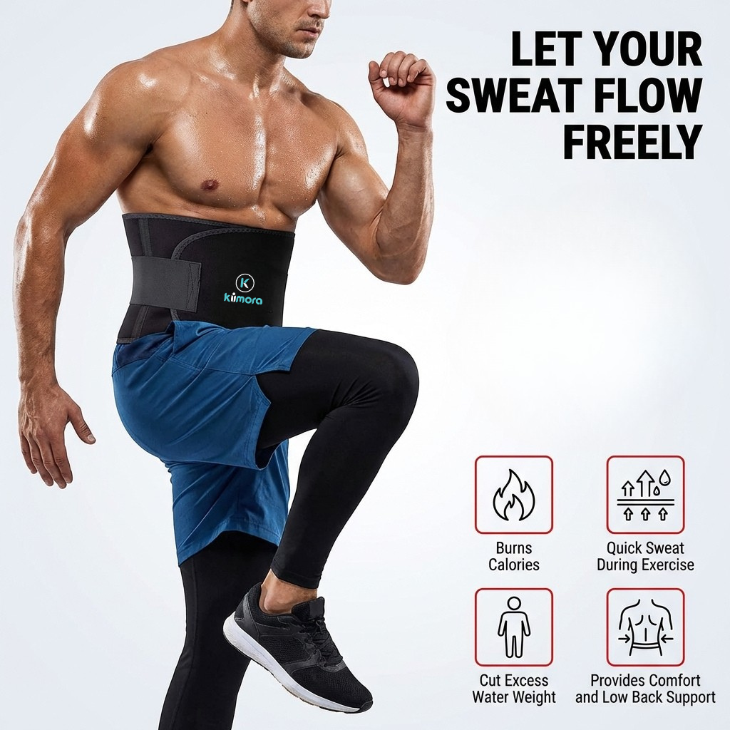 The Kiimora Sweat Belt is designed to help increase sweat around the abdominal area during workouts, helping support your fitness and weight loss journey. Made with comfortable and flexible material, this waist trimmer belt fits securely around your stomach and can be worn under clothes while exercising, running, or doing daily activities. It helps provide compression and support to the core while promoting better sweating during physical activity.